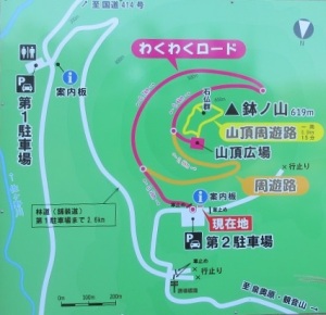 友人との話し合いで、第2駐車場まで車を進めました。山頂広場へは1.3キロしかありません。散歩コースと言っても良いでしょう。