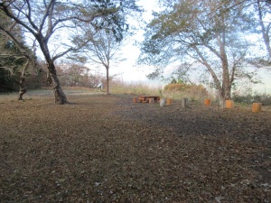 4年前に来た時は相変わらずの荒廃した広場でしたが、さすがにその後、整備したのでしょう、テーブルや腰掛が新しくなっていました。気分は最高!